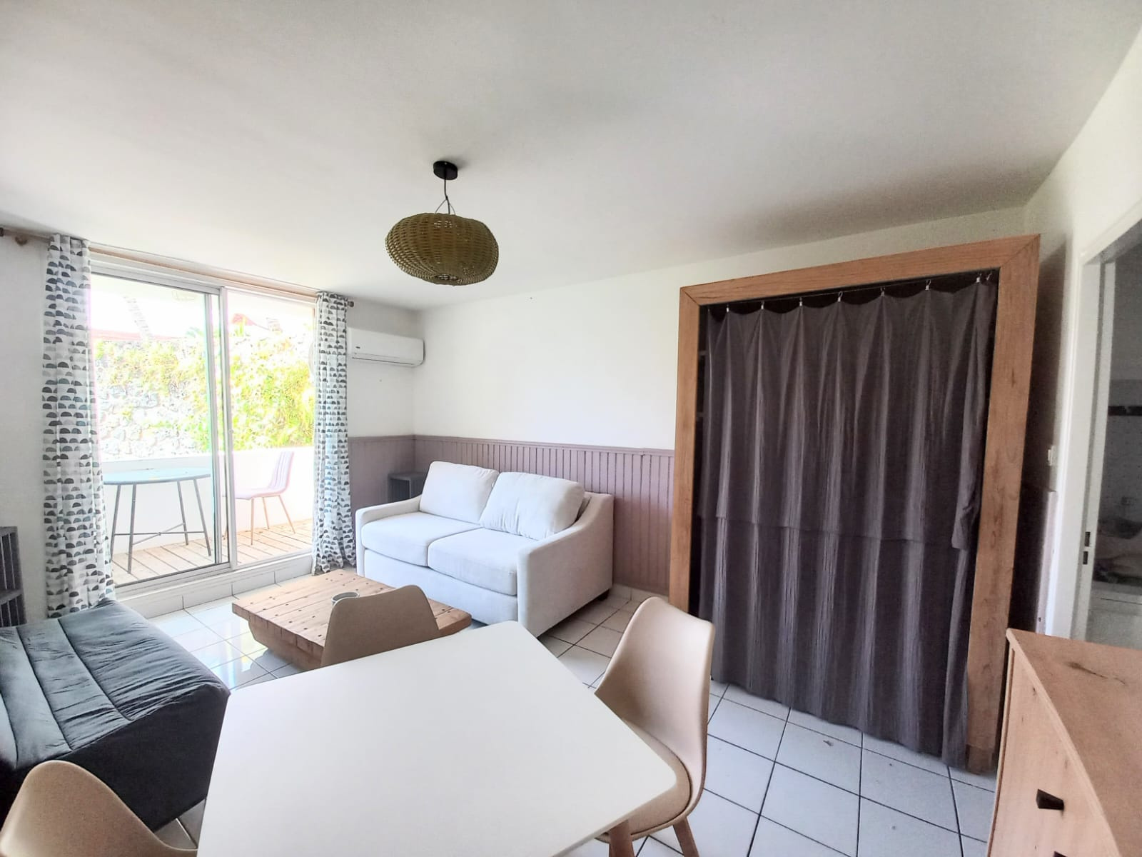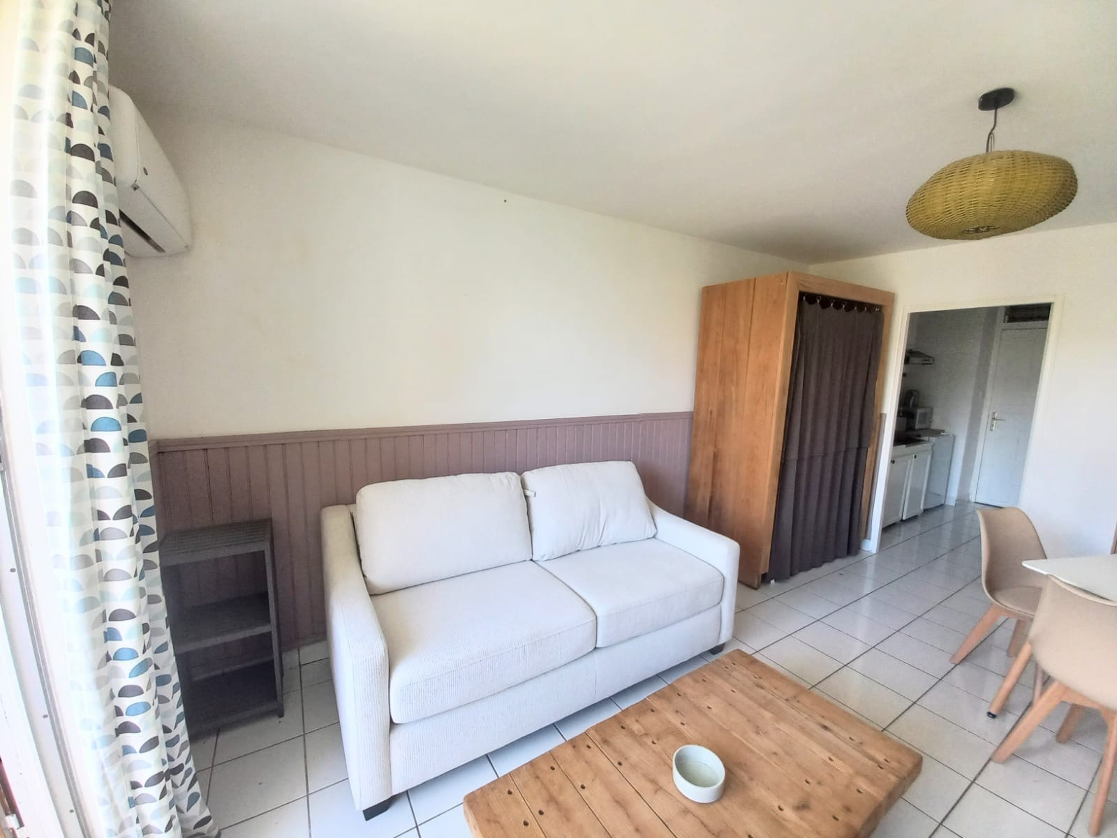 Ma pièce de vie de 17m² est climatisée et se prolonge sur ma terrasse de 5m².