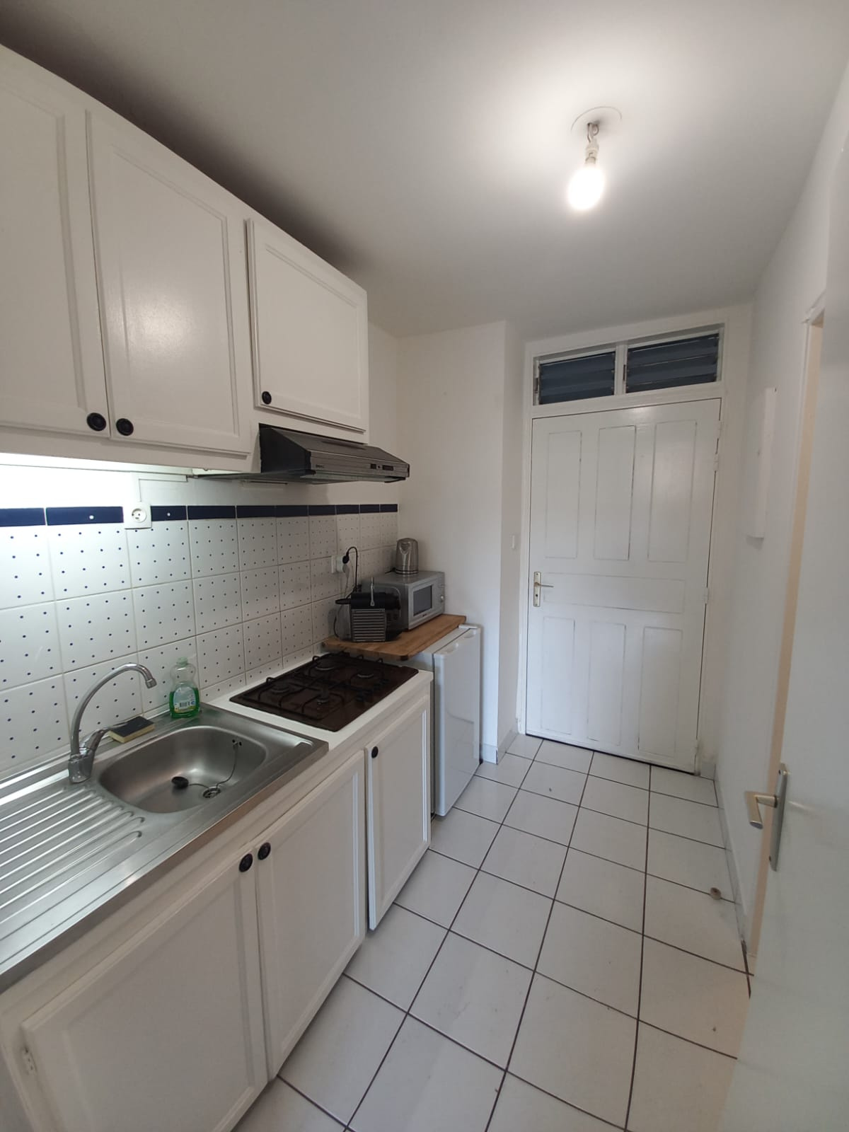 Vous pénétrez par ma petite cuisine fonctionnelle, suivie de ma salle d'eau avec wc, équipée d'un lave linge.