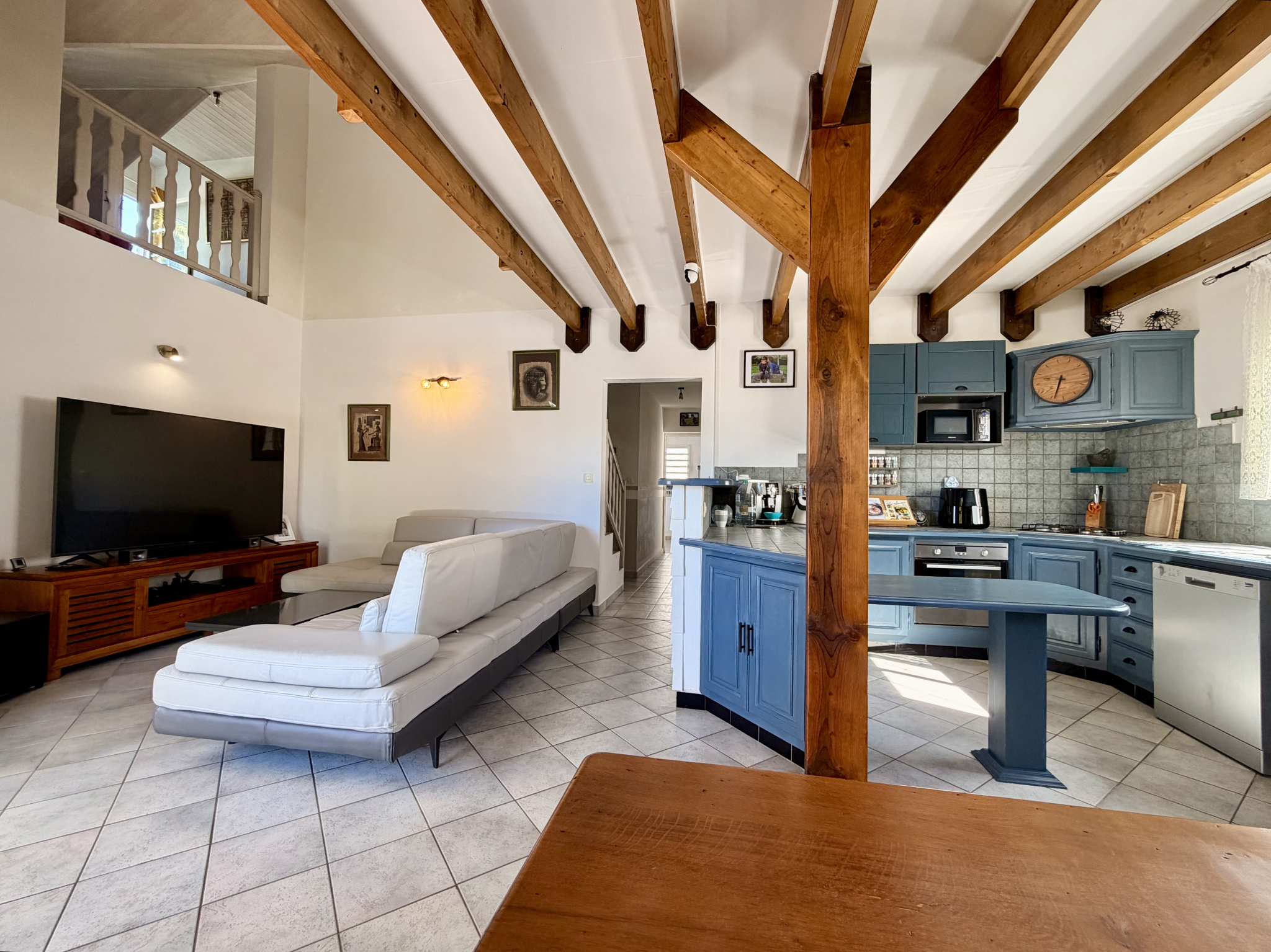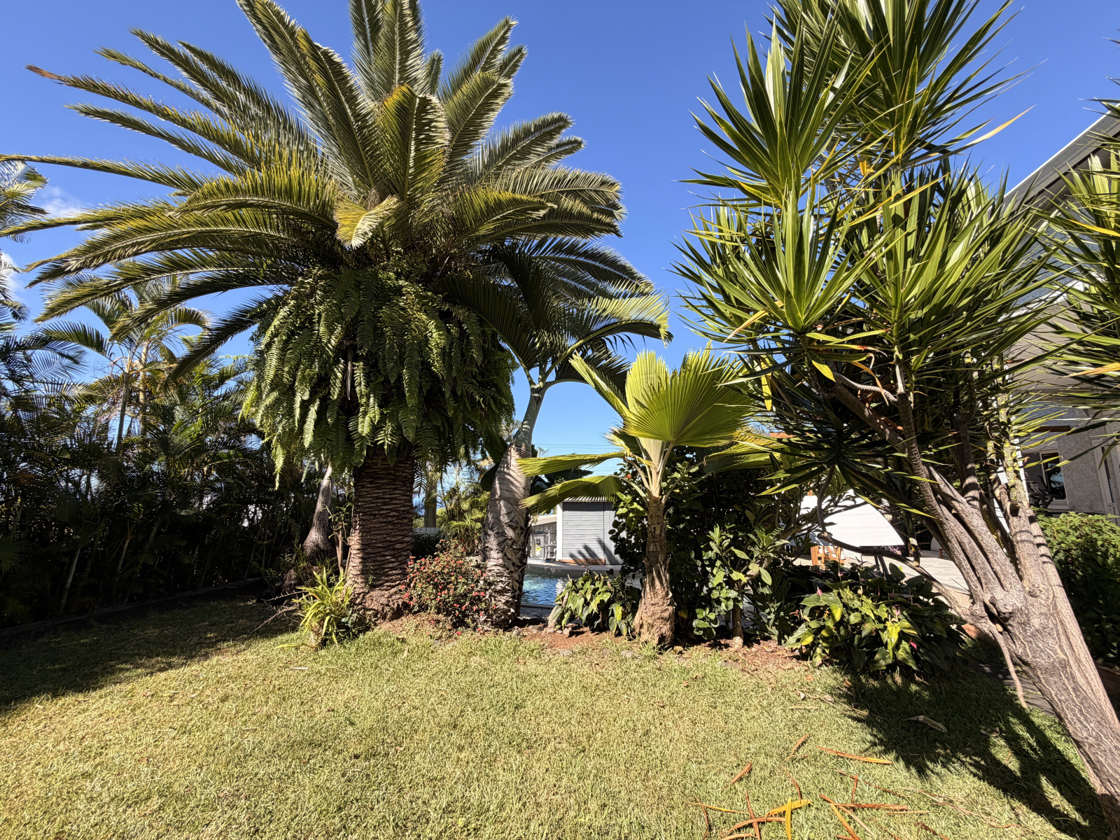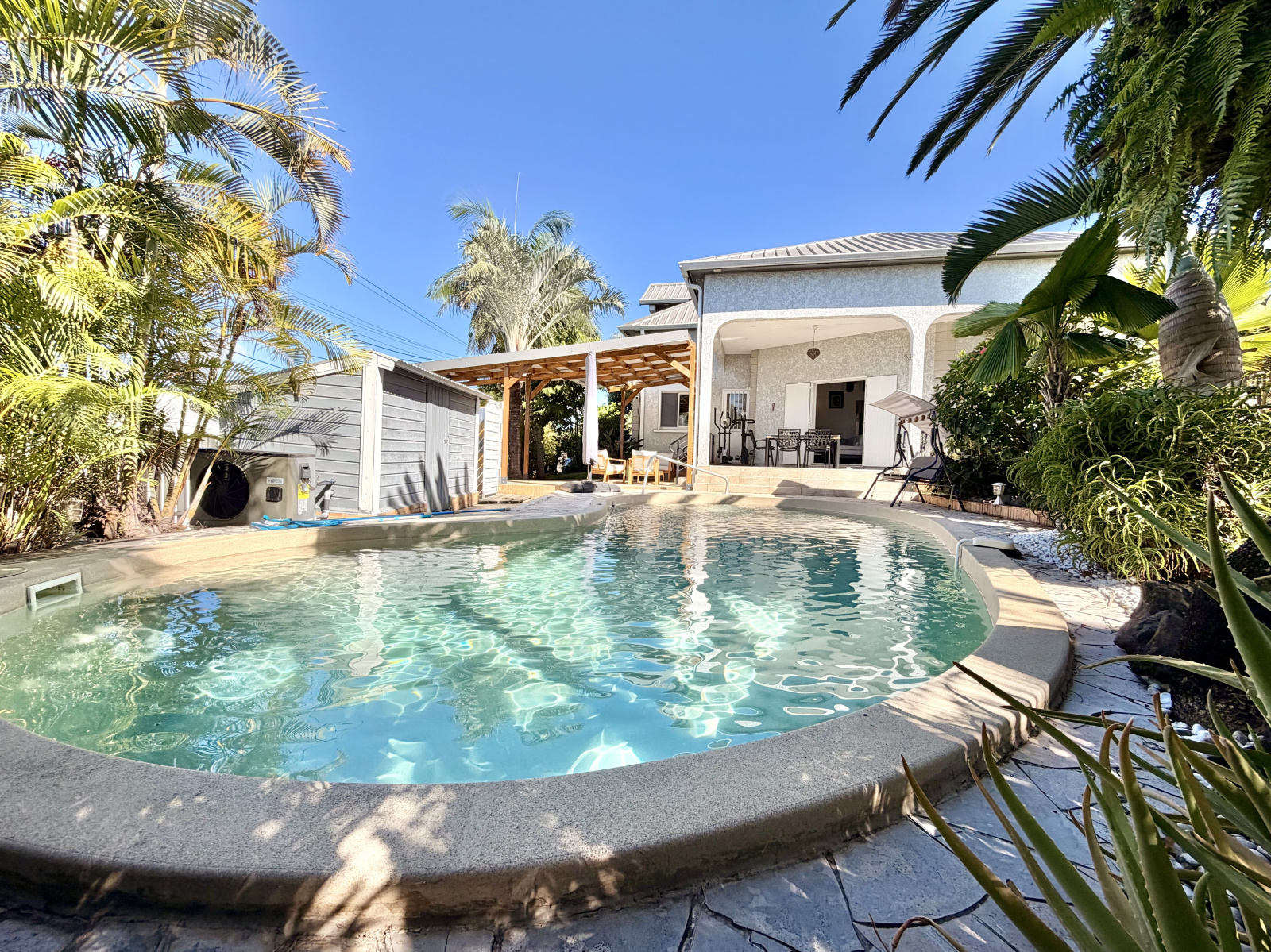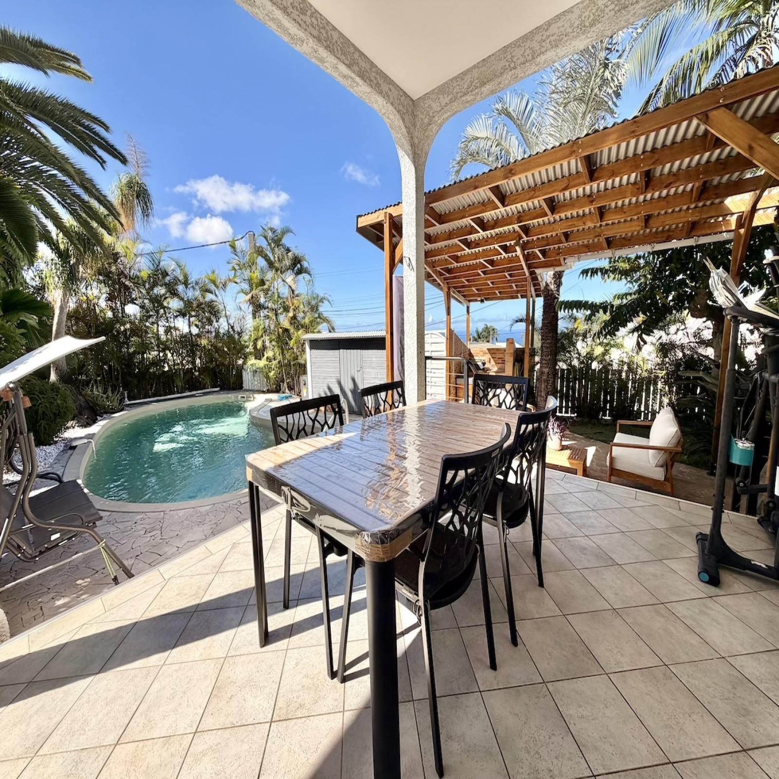 Elle s'accompagne d'un garage,d'une buanderie et d'une varangue avec vue sur la mer, une pergola ,une piscine au sel chaufée pour profiter de moment de calme et de loisir.. De plus vous pourrez profiter d'un jardin arboré de 300 m2